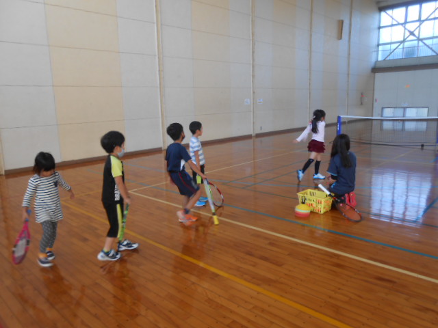 〇浅羽体育センターで開催されたキッズテニススクールの風景