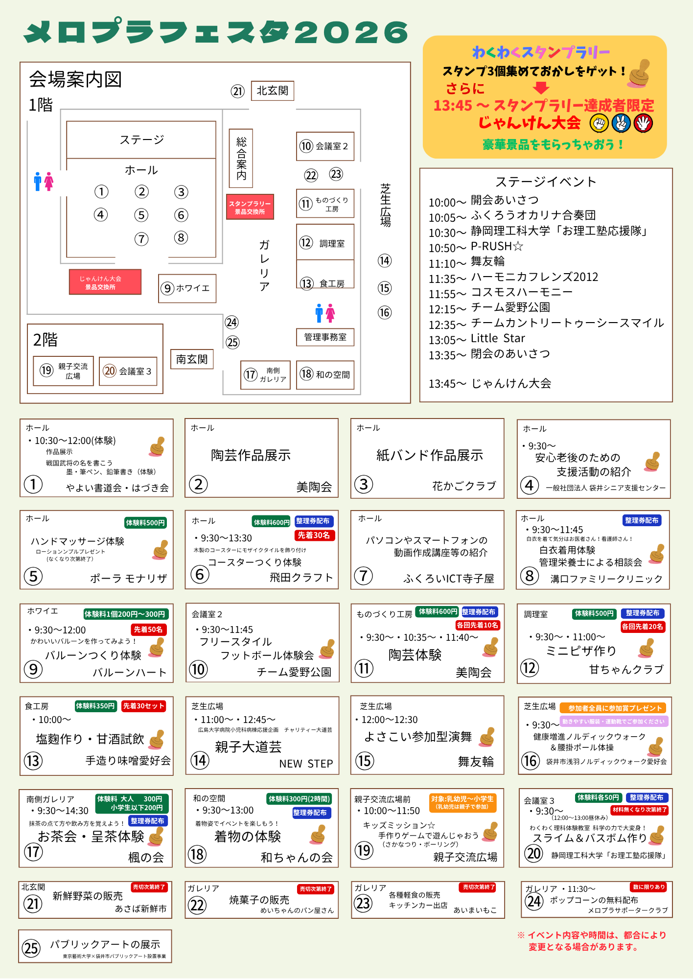 今年は多機能ホールでのステージイベント終了後、スタンプラリーで景品ゲットした方が参加できる「じゃんけん大会」もあります!