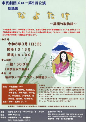 市民劇団メローならではの温かさと創造力が息づく舞台を、どうぞお楽しみ下さい。